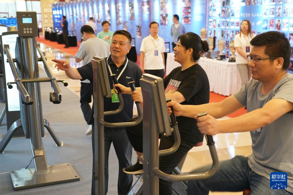 5月29日,与会人员在现场体验智能健身器材。新华社记者 邵瑞 摄