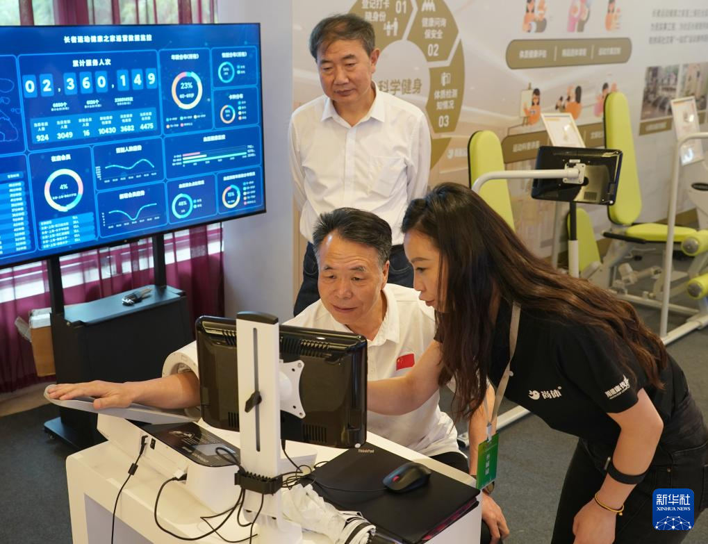 5月29日,与会人员在现场体验体测仪器。新华社记者 邵瑞 摄