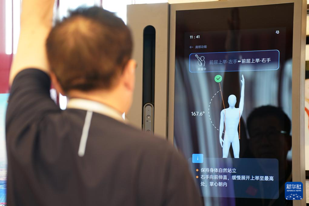 5月29日,与会人员在现场体验健康管理仪器。新华社记者 邵瑞 摄