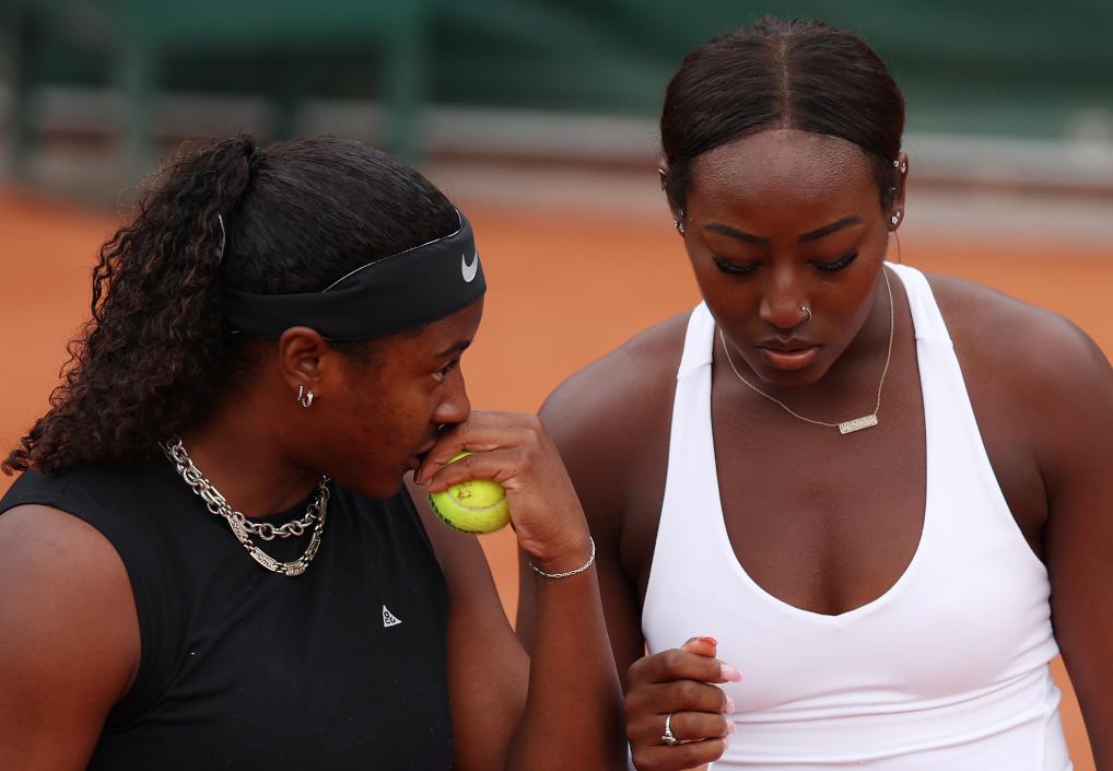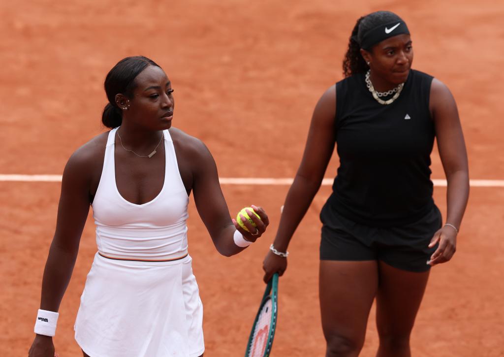 6月1日,巴普蒂斯特(左)/帕克斯在比赛中。新华社记者 高静 摄