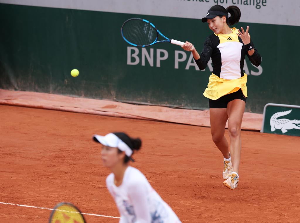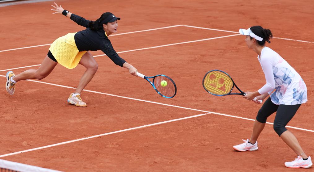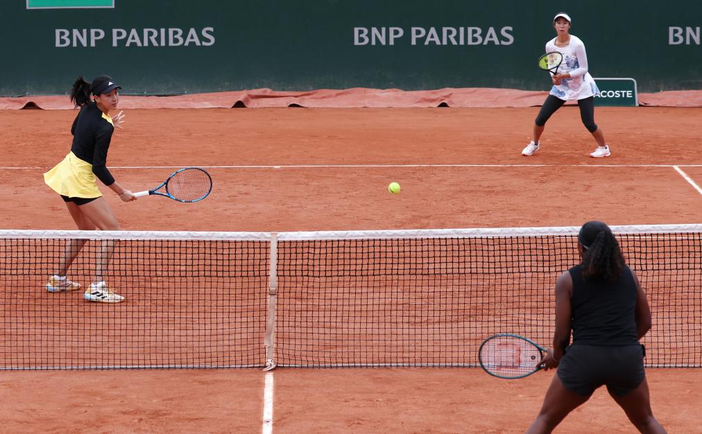 6月1日,王欣瑜(右)/柴原瑛菜在比赛中。新华社记者 高静 摄