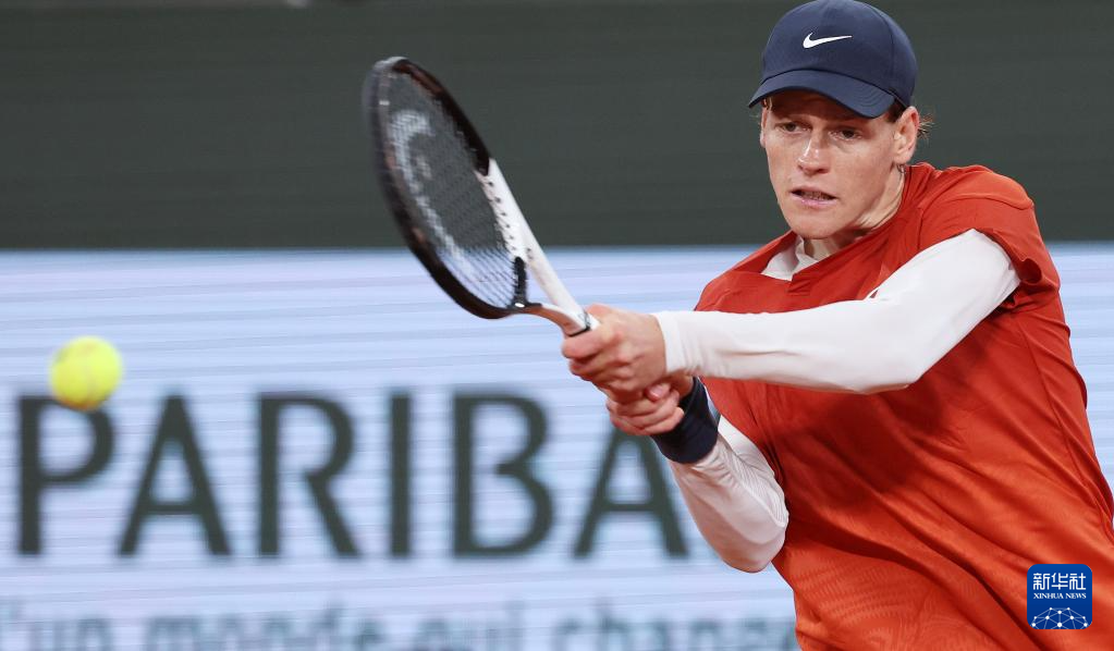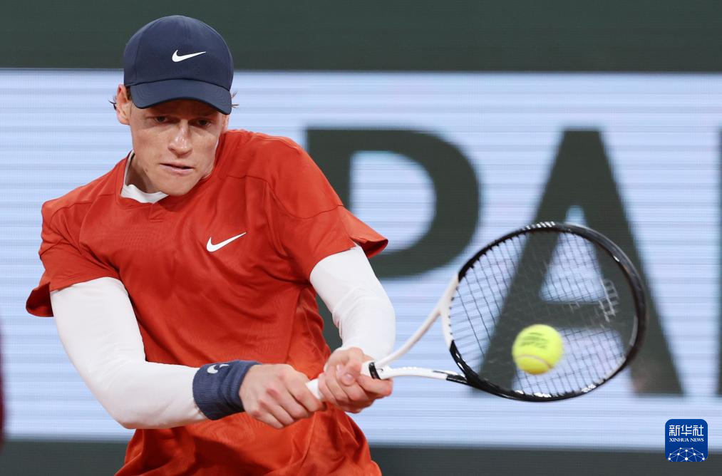 5月31日,辛纳在比赛中回球。