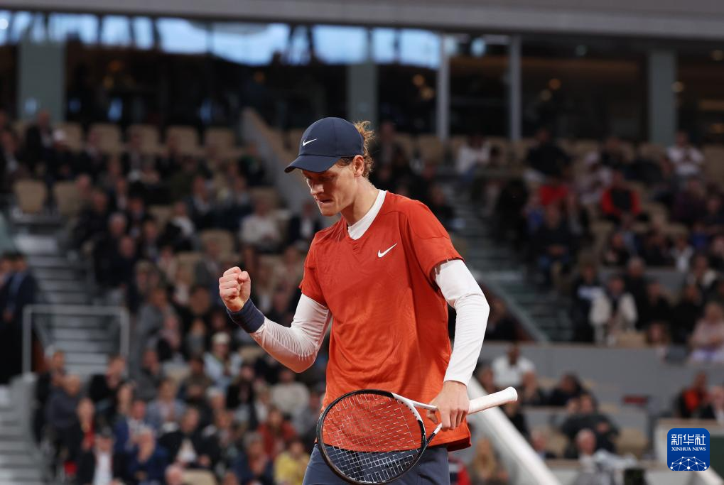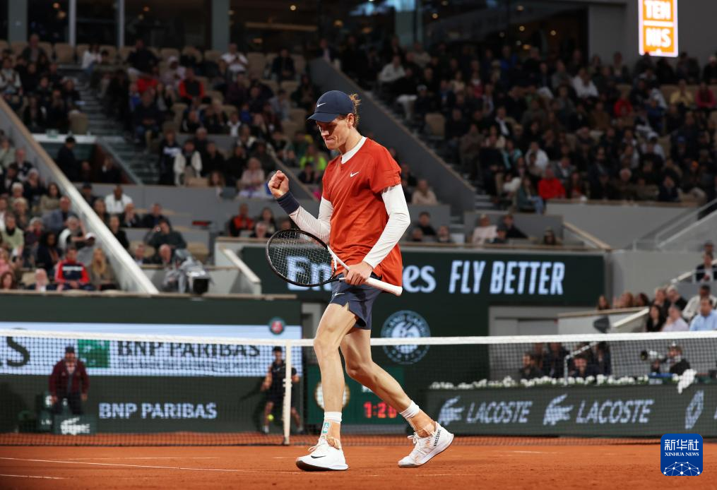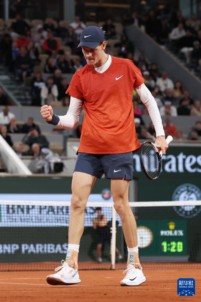 5月31日,辛纳在比赛中庆祝得分。