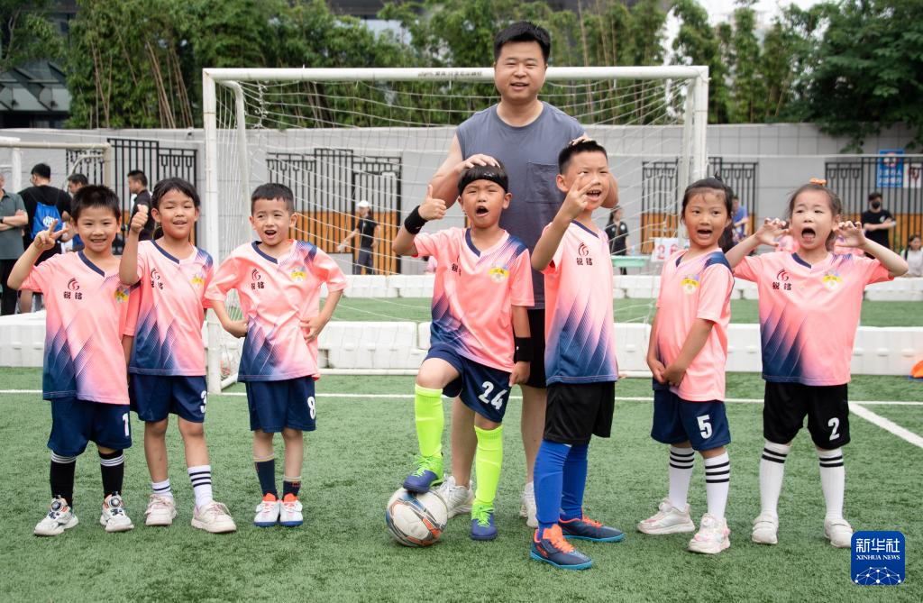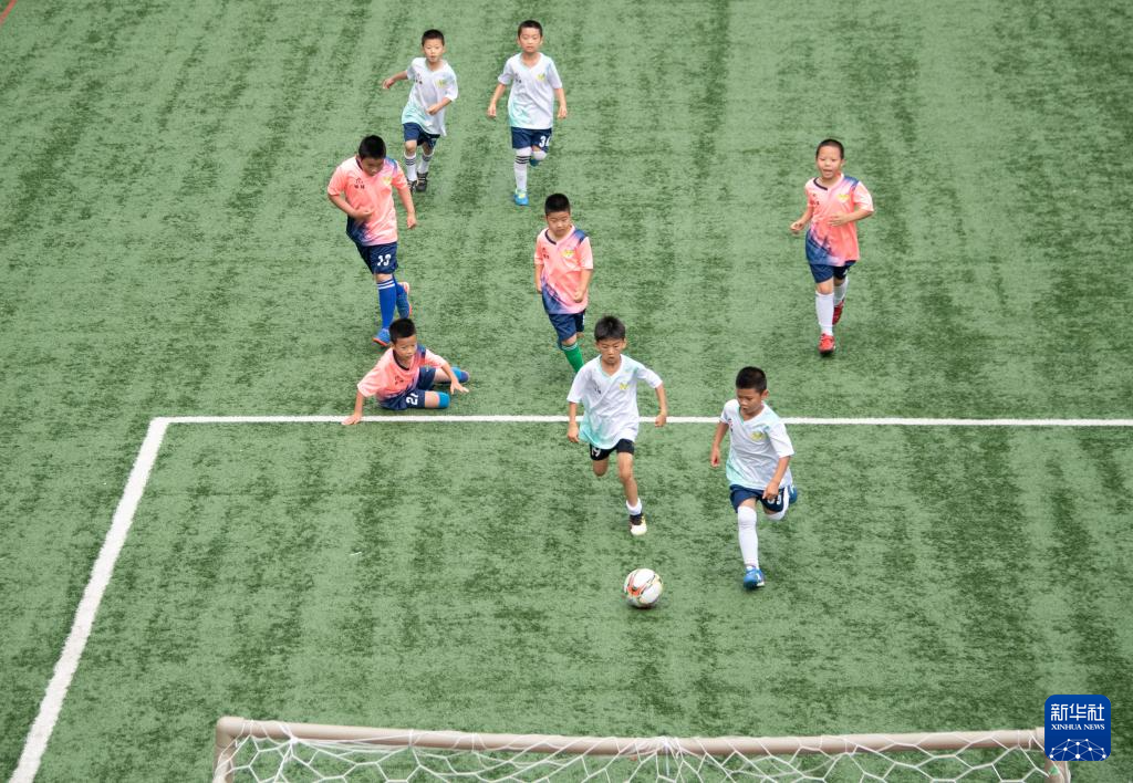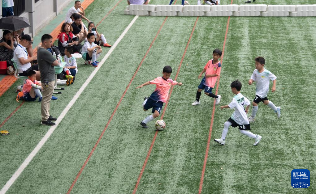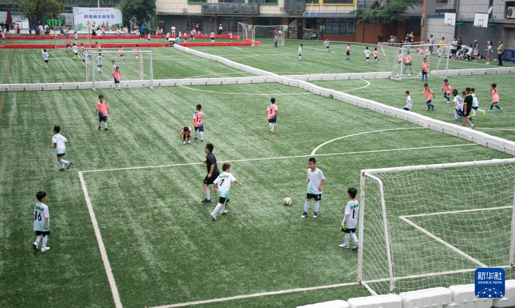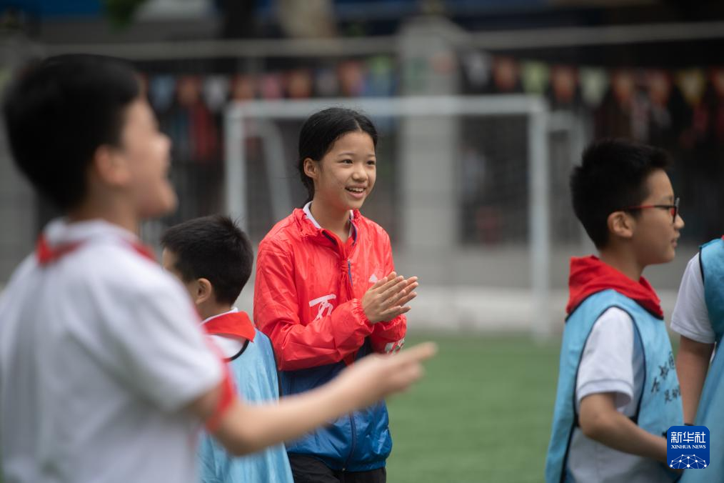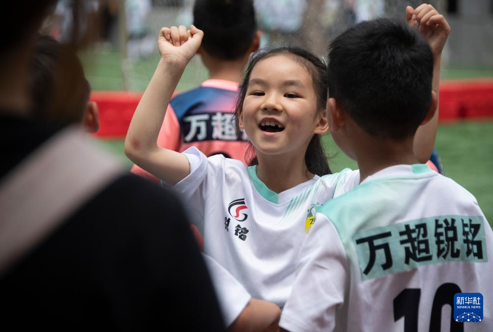 6月1日,在湖北省武汉市江汉区万松园路小学,孩子们在“万超”联赛中。新华社记者 杜子璇 摄