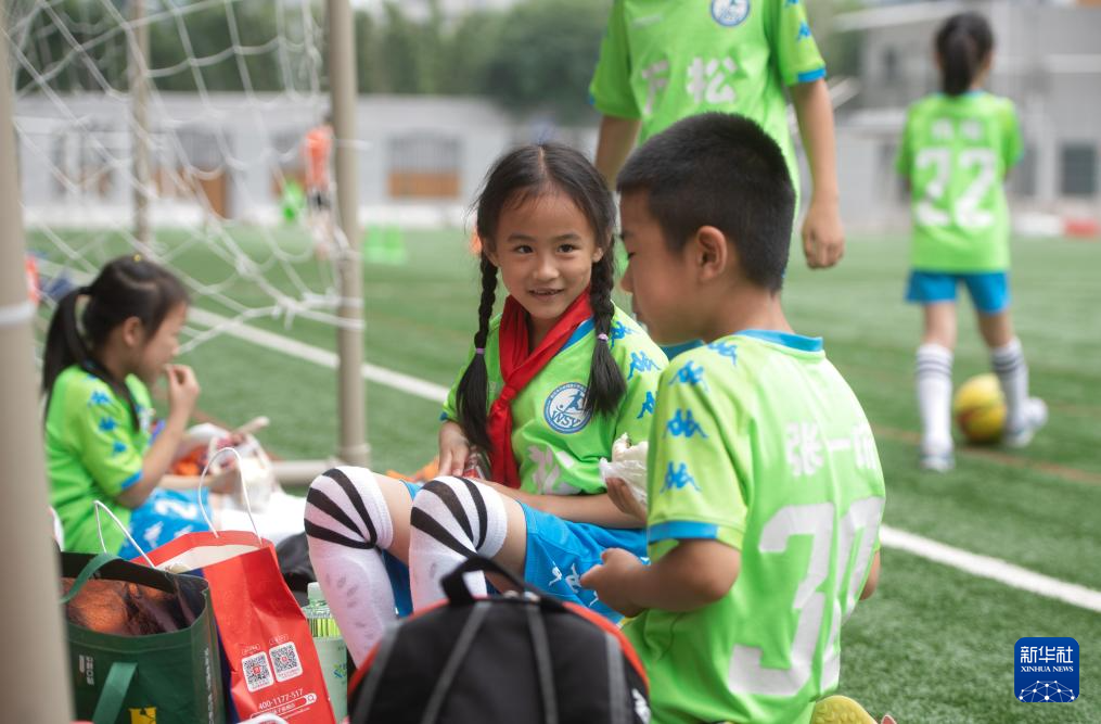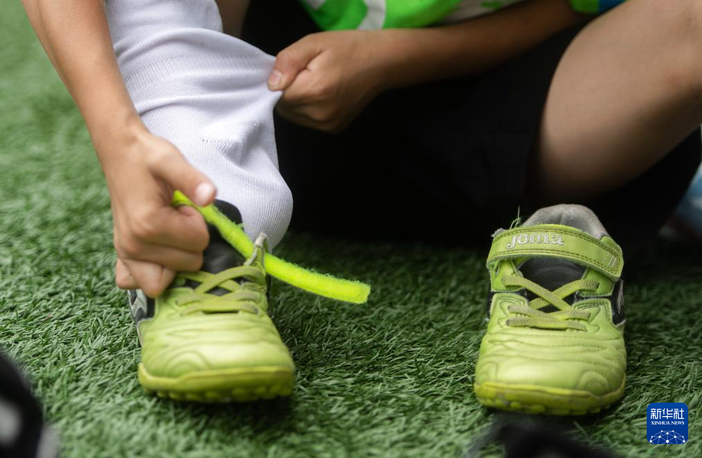 5月31日,在湖北省武汉市江汉区万松园路小学,孩子们在放学后准备参与足球训练。新华社记者 杜子璇 摄