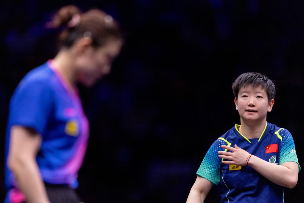 6月2日,孙颖莎(右)在比赛中。新华社记者 黄伟 摄