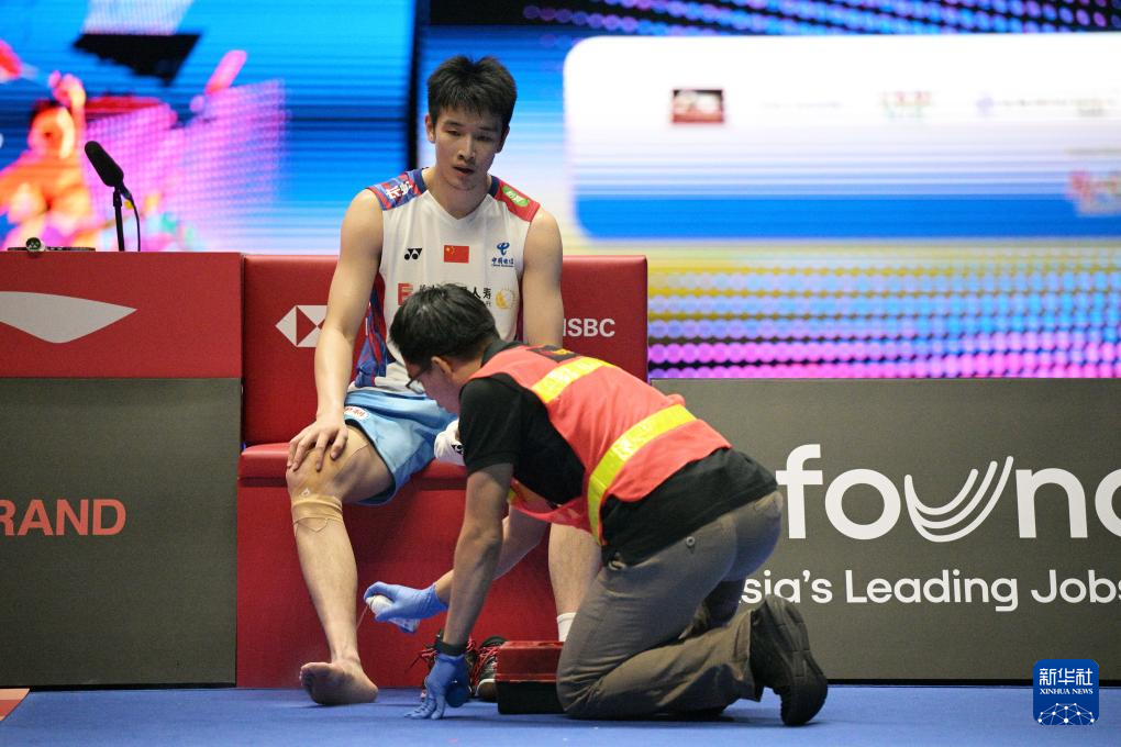 6月2日,李诗沣(左)在比赛间隙接受治疗。新华社发(邓智炜摄)