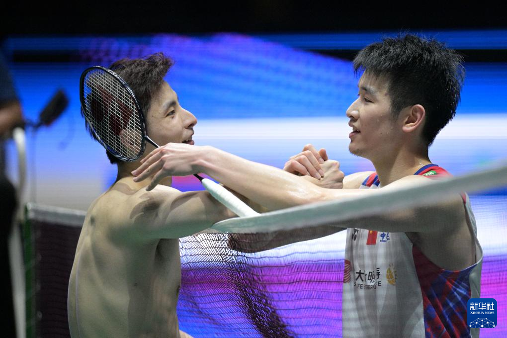 6月2日,石宇奇(左)与李诗沣在比赛后互相致意。新华社发(邓智炜摄)