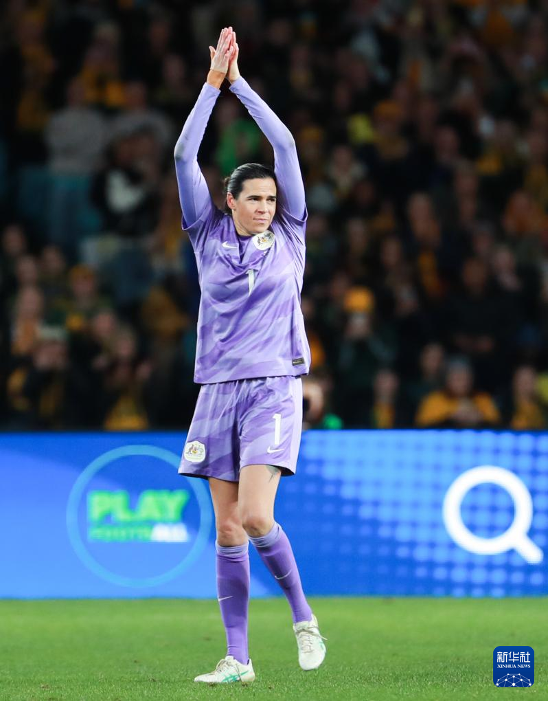 6月3日,澳大利亚队守门员威廉姆斯在比赛中被换下时向观众致意。新华社记者 马平 摄