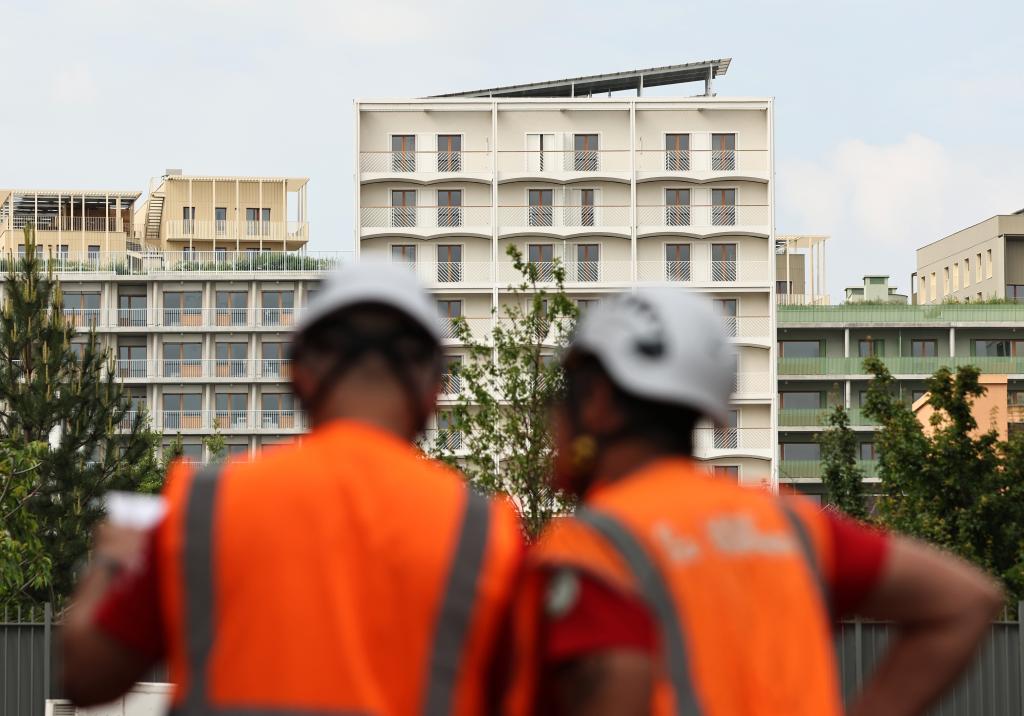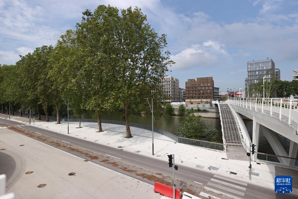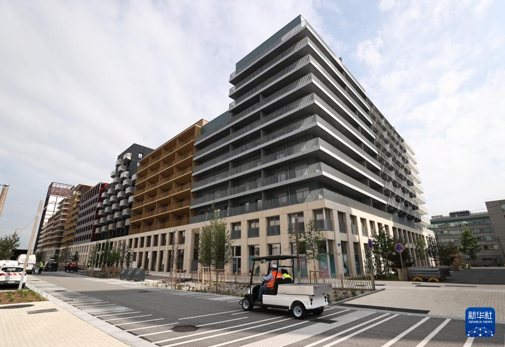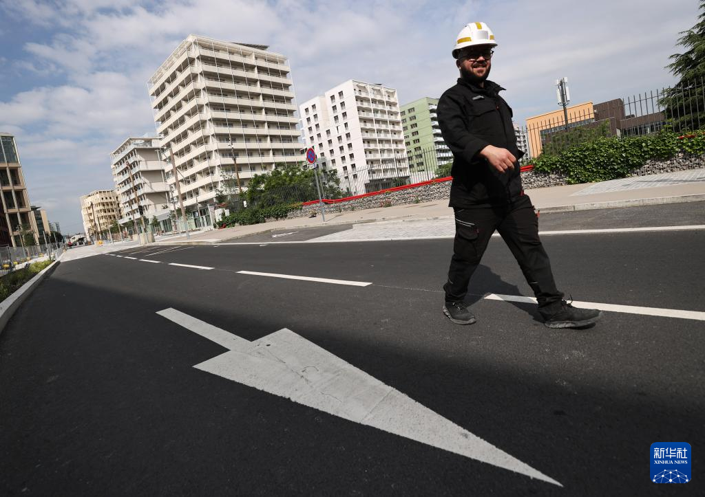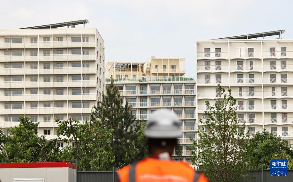 6月4日,一名工作人员经过巴黎奥运村和残奥村建筑。新华社记者 高静 摄
