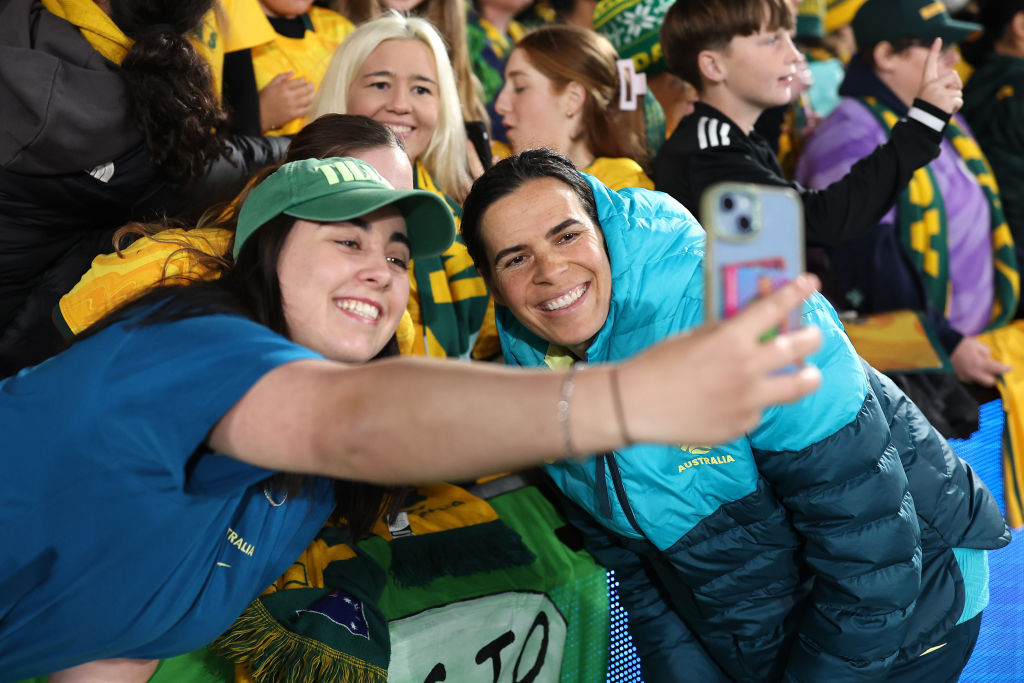 在首发阵容亮相环节,威廉斯最后走出球员通道,高举双手向观众致意。一份特殊的礼物让竭力克制情绪的威廉斯顿时眼眶湿润:澳大利亚网球传奇古拉贡将一件兽皮斗篷披在有着原住民血统的威廉斯身上,从背后紧紧抱住这位为澳大利亚女足效力时间最长的运动员。