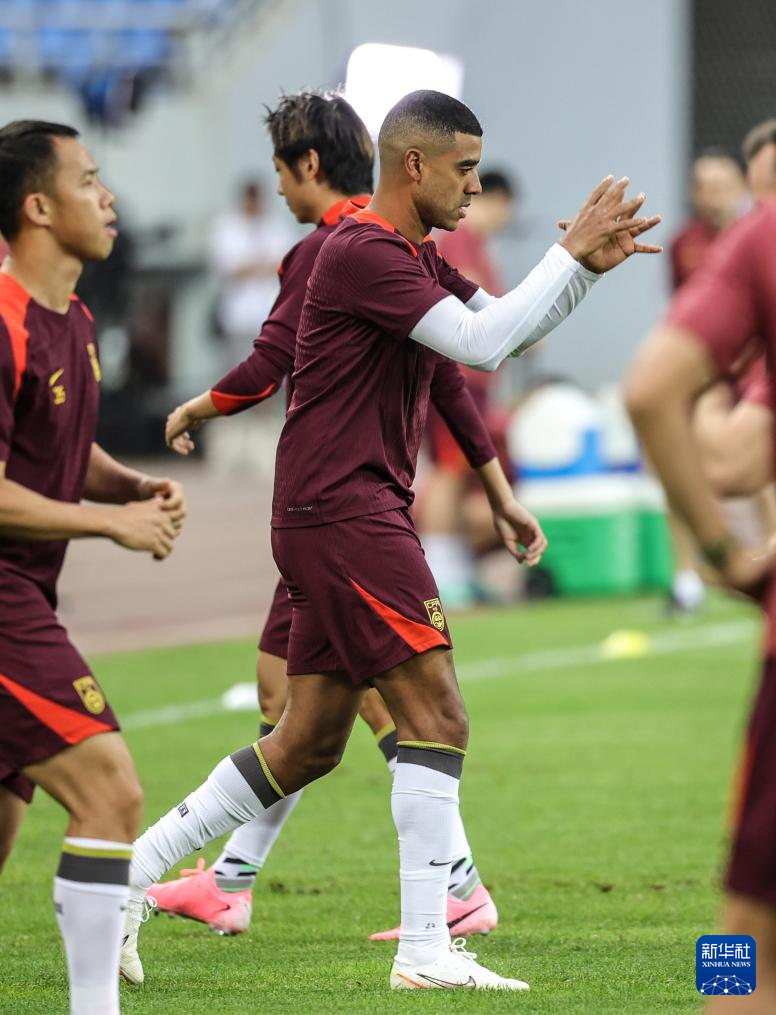 6月5日,中国队球员费南多(前)在训练中。新华社记者 潘昱龙 摄