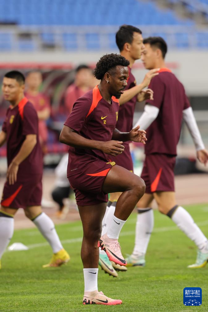 6月5日,中国队球员阿兰(右)在训练中。新华社记者 潘昱龙 摄