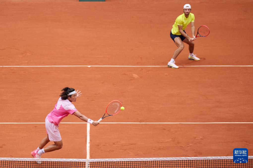 6月5日,张之臻/马哈奇(右)在比赛中。新华社记者 孟鼎博 摄