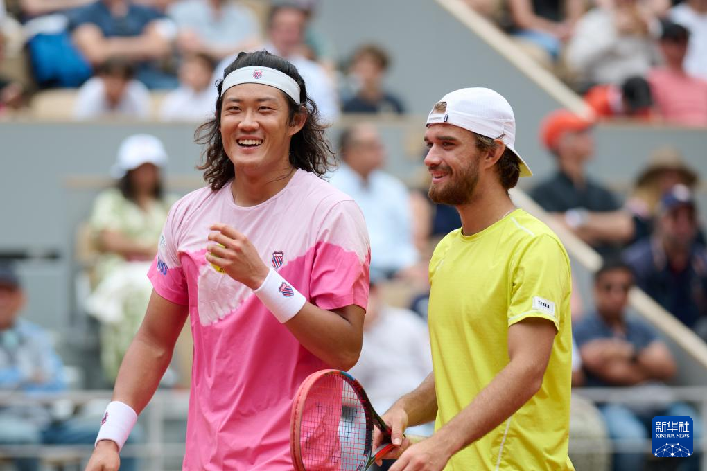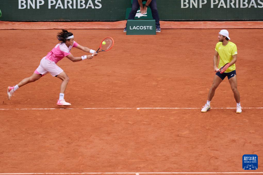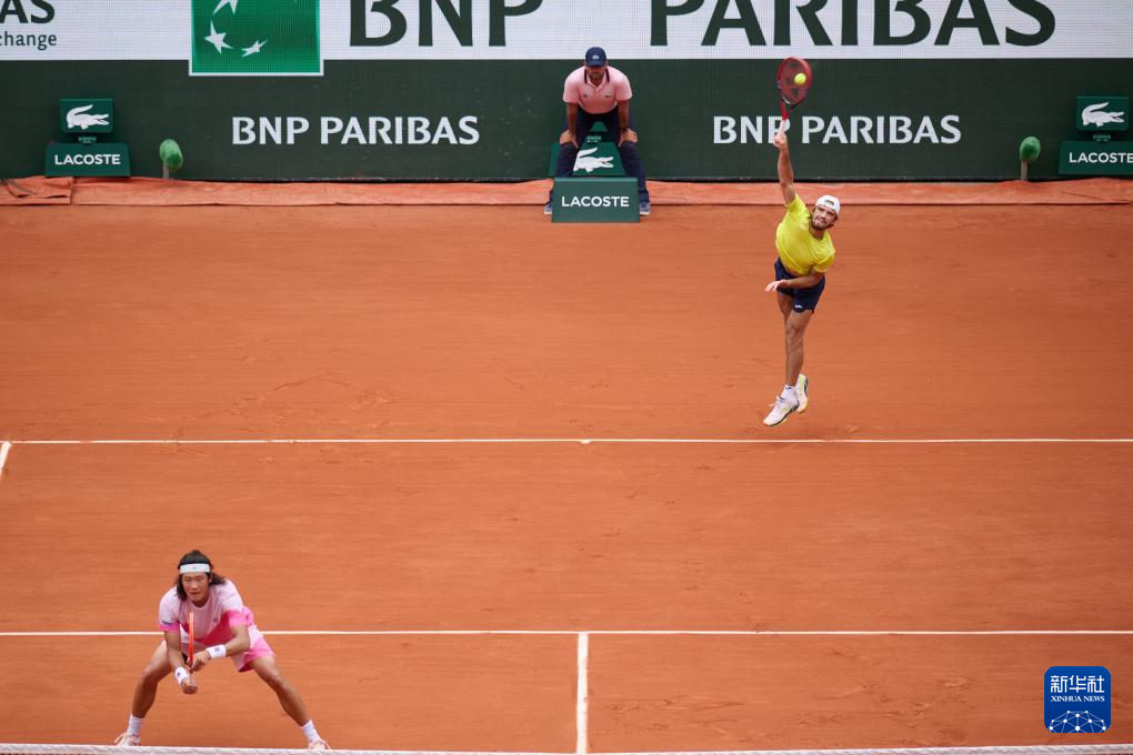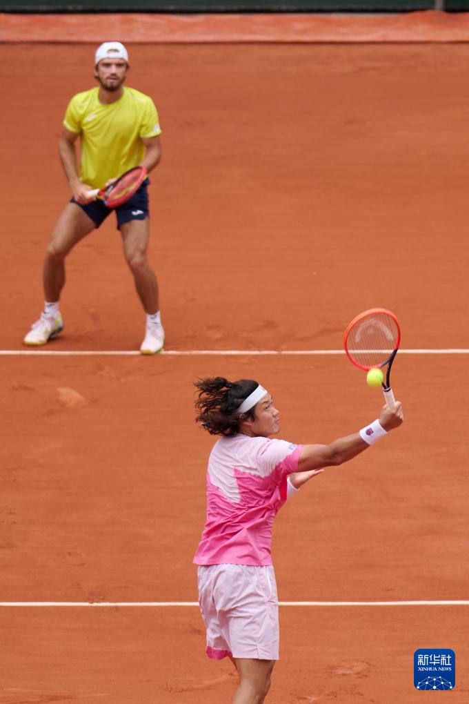 6月5日,张之臻(左)/马哈奇在比赛中。新华社记者 孟鼎博 摄