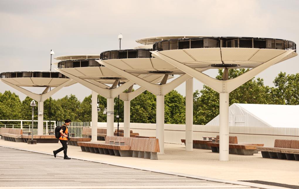 参观结束后,米肖陪同记者来到一排蘑菇状的空气净化装置跟前。他告诉记者,由于奥运村靠近高速公路,这组试验装置将在奥运期间过滤空气中的颗粒,并借此机会验证其有效性。“奥运村是一个未来实验室,正如这些测试中的颗粒过滤器和公寓冷却系统,今后有望向更广泛的市镇和居民推广。希望巴黎奥运村成为新的里程碑,因为奥运会不只是比赛,还应传递体育价值观,并让生活发生改变。”