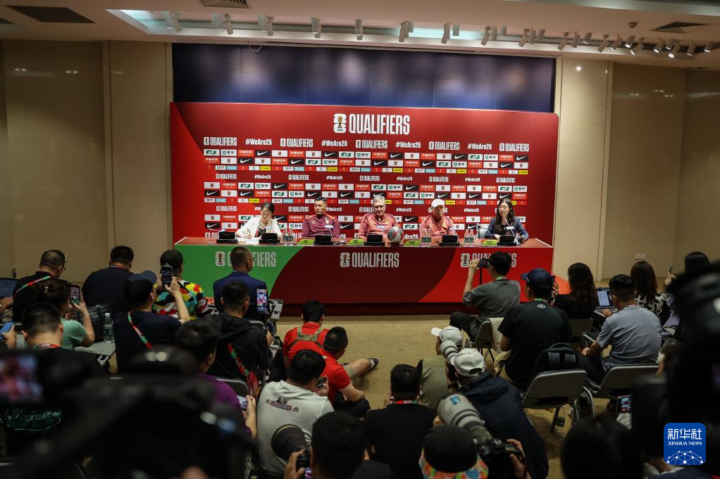 这是6月5日拍摄的中国队新闻发布会现场。新华社记者 潘昱龙 摄