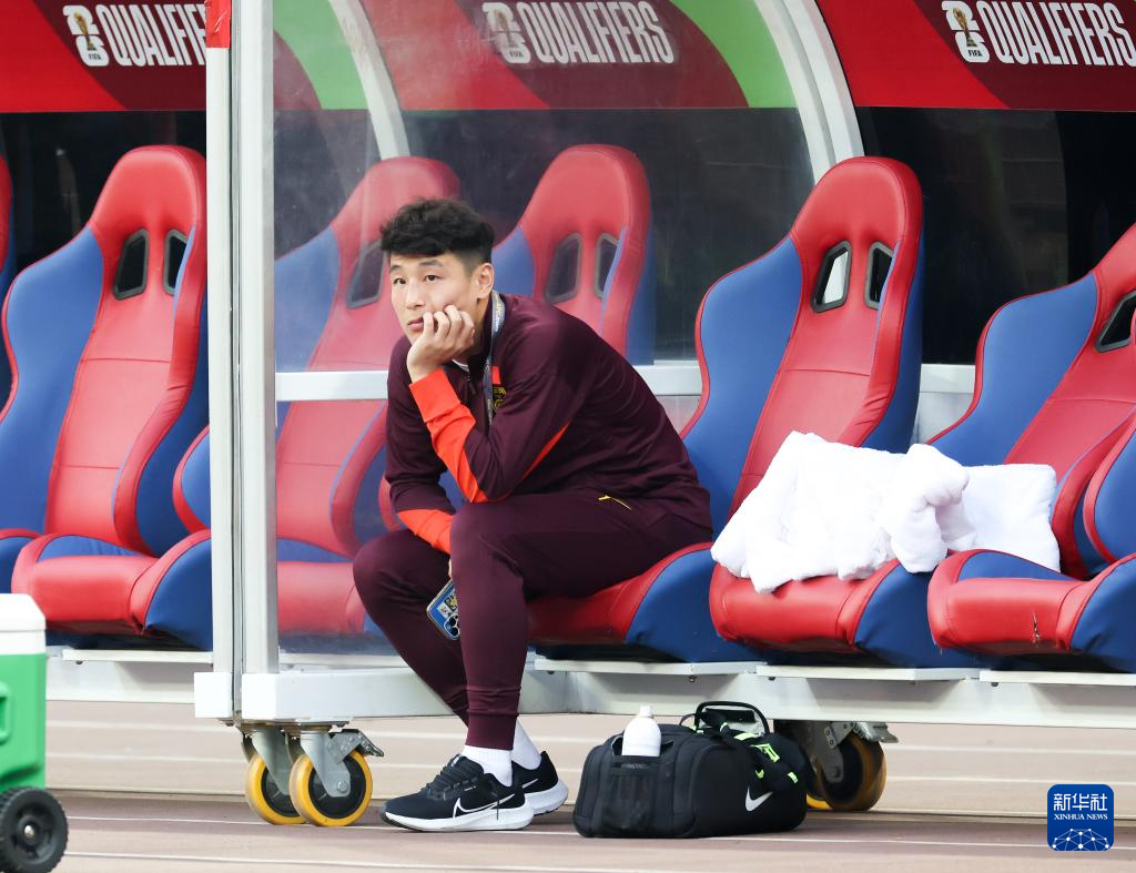 6月6日,因累计黄牌停赛无法出战的中国队球员武磊在比赛前。新华社记者 曹灿 摄