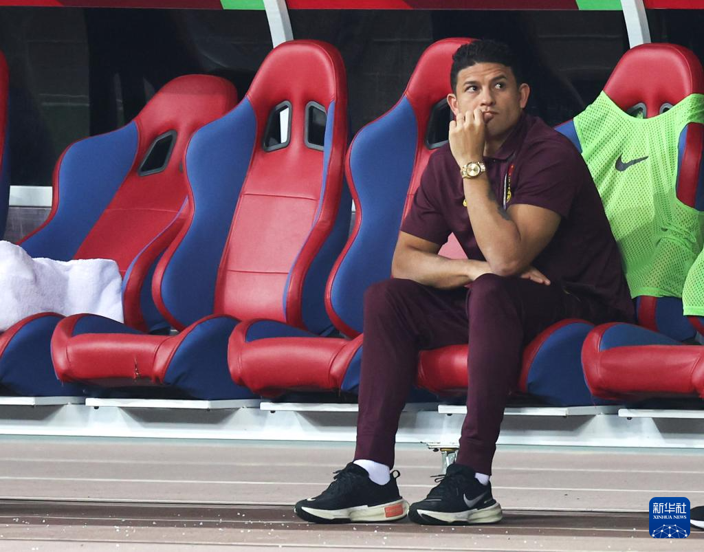 6月6日,未能进入本场大名单的中国队球员艾克森在比赛前。新华社记者 曹灿 摄