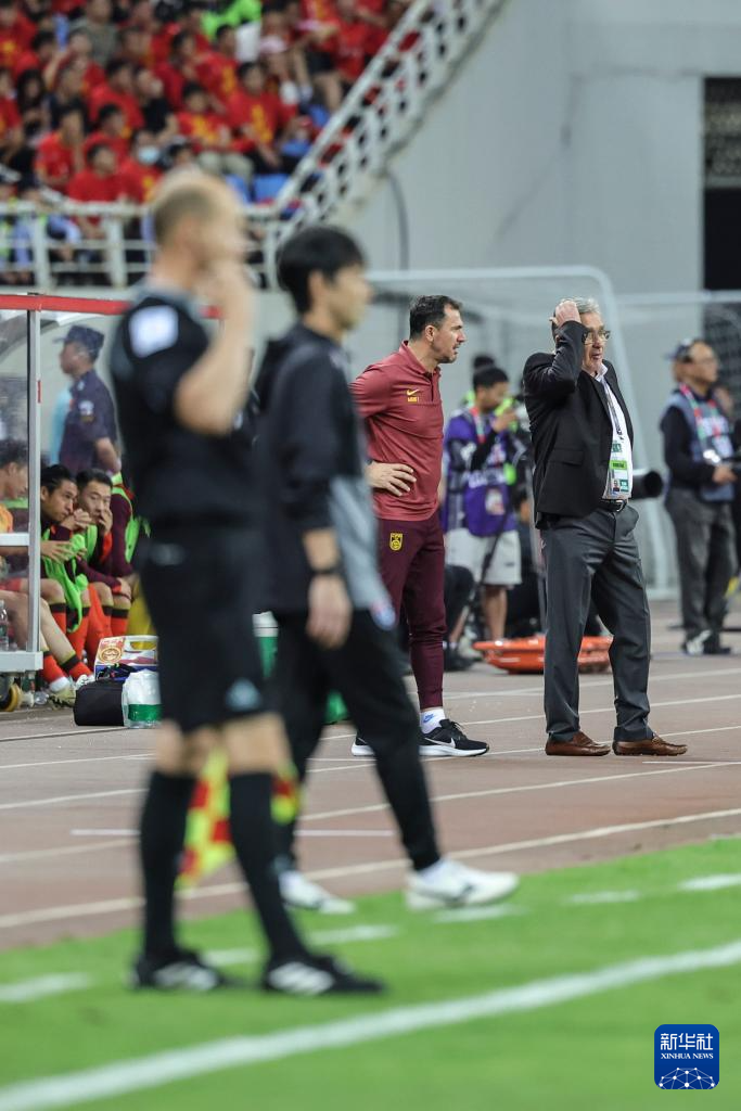 6月6日,中国队主教练伊万科维奇(右一)在场边观战。新华社记者 潘昱龙 摄