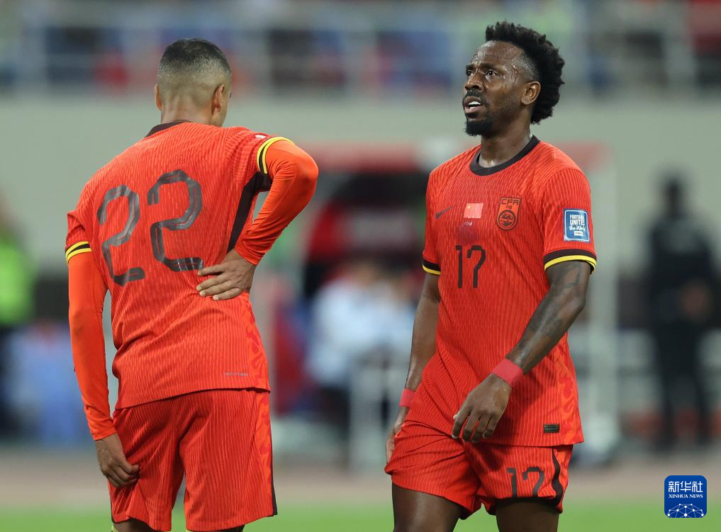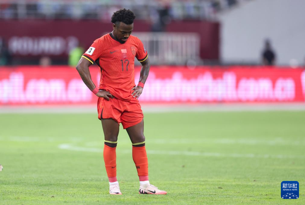 6月6日,首次代表国家队出场的中国队球员王振澳(左一)在球队失球后。新华社记者 张晨 摄
