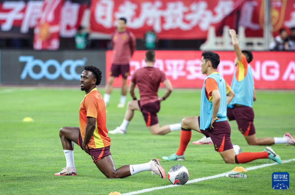 6月6日,中国队球员费南多(左一)在赛前训练中。新华社记者 潘昱龙 摄