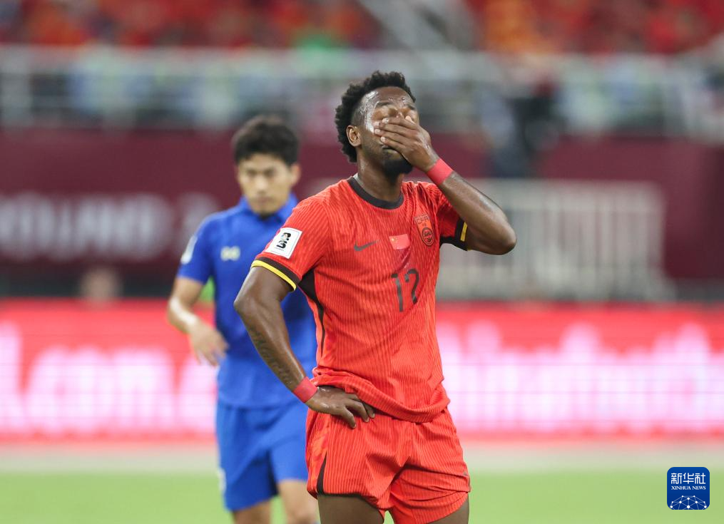 6月6日,中国队球员阿兰(右)在比赛中因错失机会懊悔。新华社记者 张晨 摄