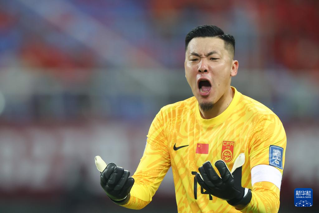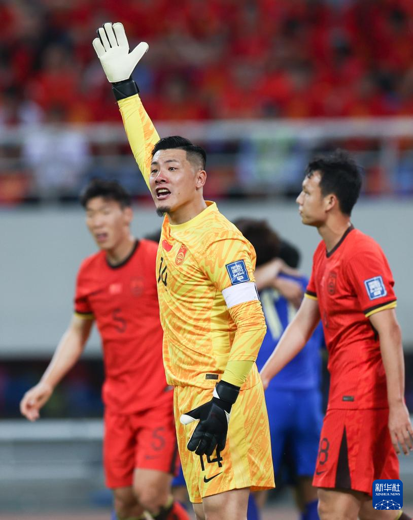 6月6日,中国队守门员王大雷在比赛中。新华社记者 曹灿 摄