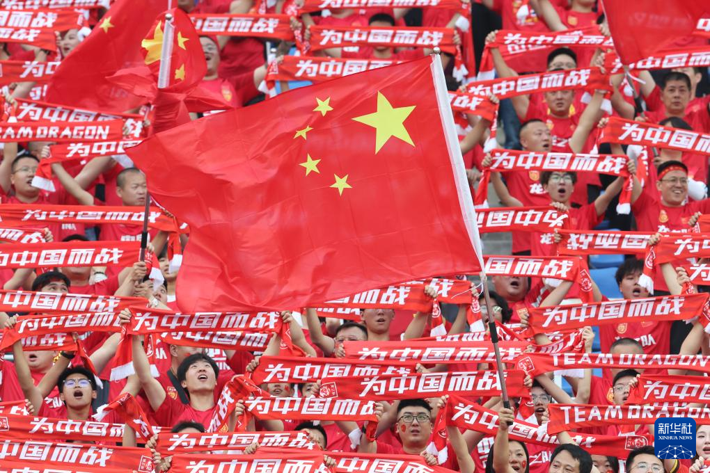 6月6日,球迷在赛前为中国队助威。新华社记者 曹灿 摄