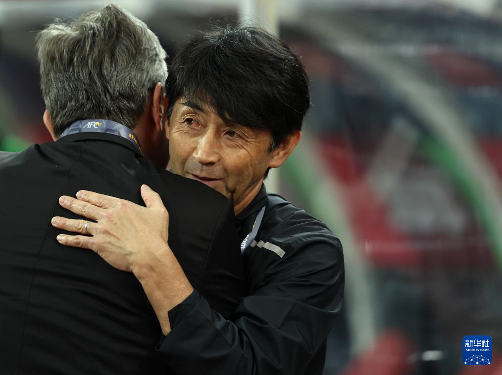 6月6日,泰国队主教练石井正忠(右)在比赛前与中国队主教练伊万科维奇拥抱致意。新华社记者 贾浩成 摄