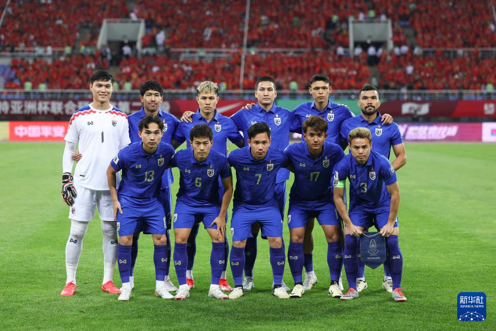 6月6日,泰国队首发球员在比赛前合影。新华社记者 潘昱龙 摄