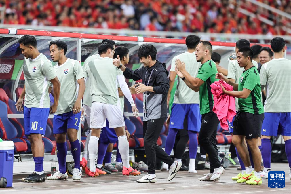 6月6日,泰国队主教练石井正忠(中)在比赛中。新华社记者 潘昱龙 摄