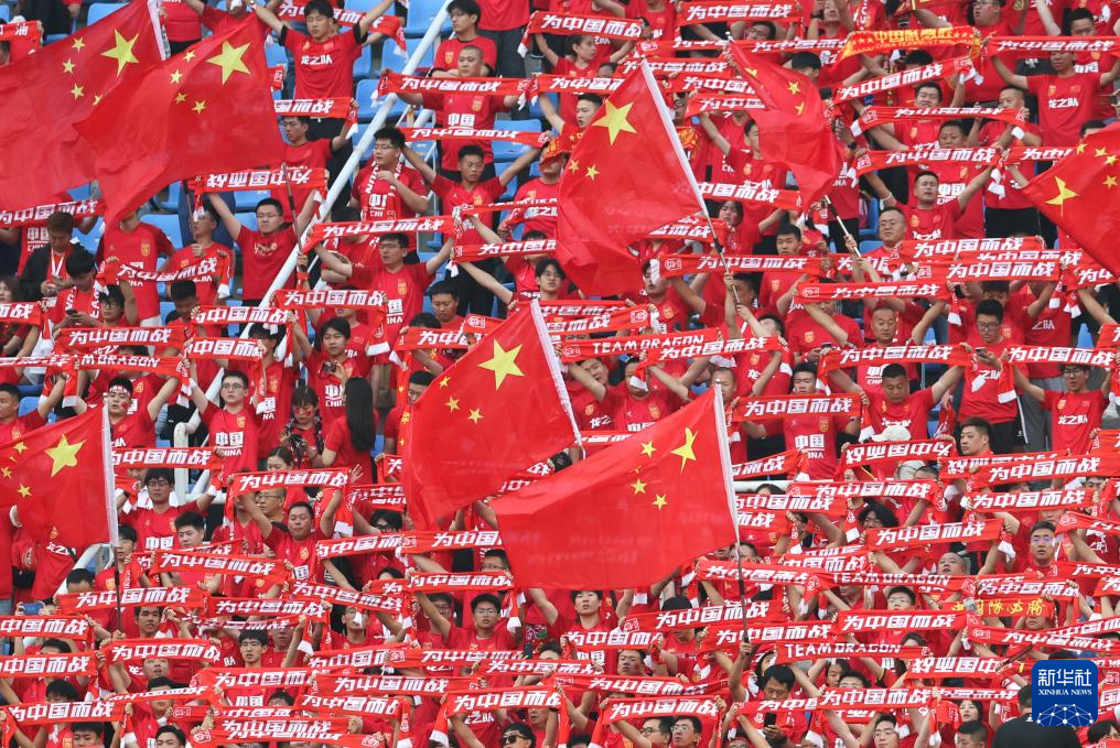 6月6日,球迷在赛前为中国队助威。新华社记者 张晨 摄