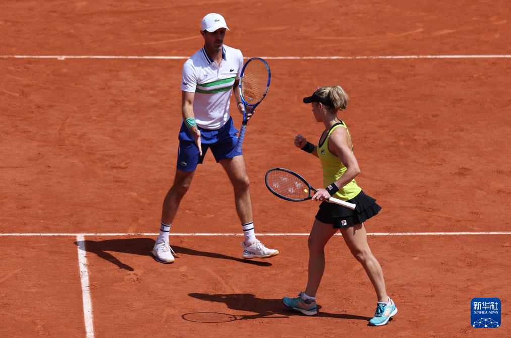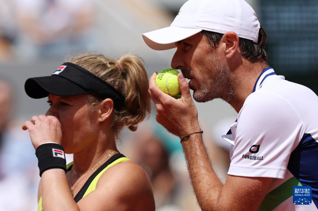 6月6日,西格蒙德(左)/罗歇-瓦瑟兰在比赛中交流。新华社记者 高静 摄