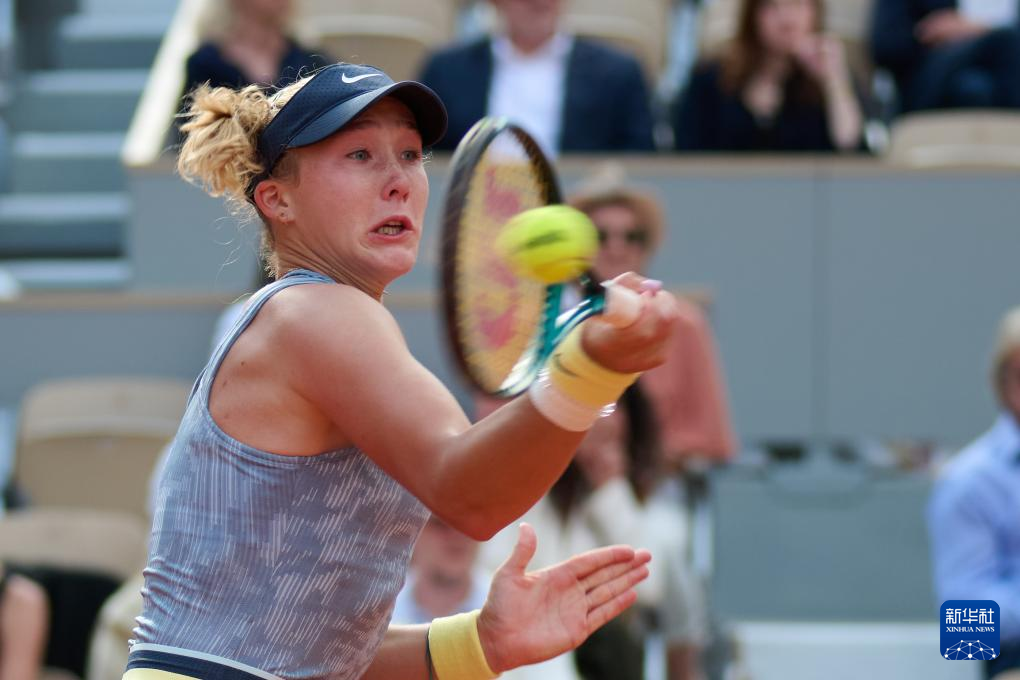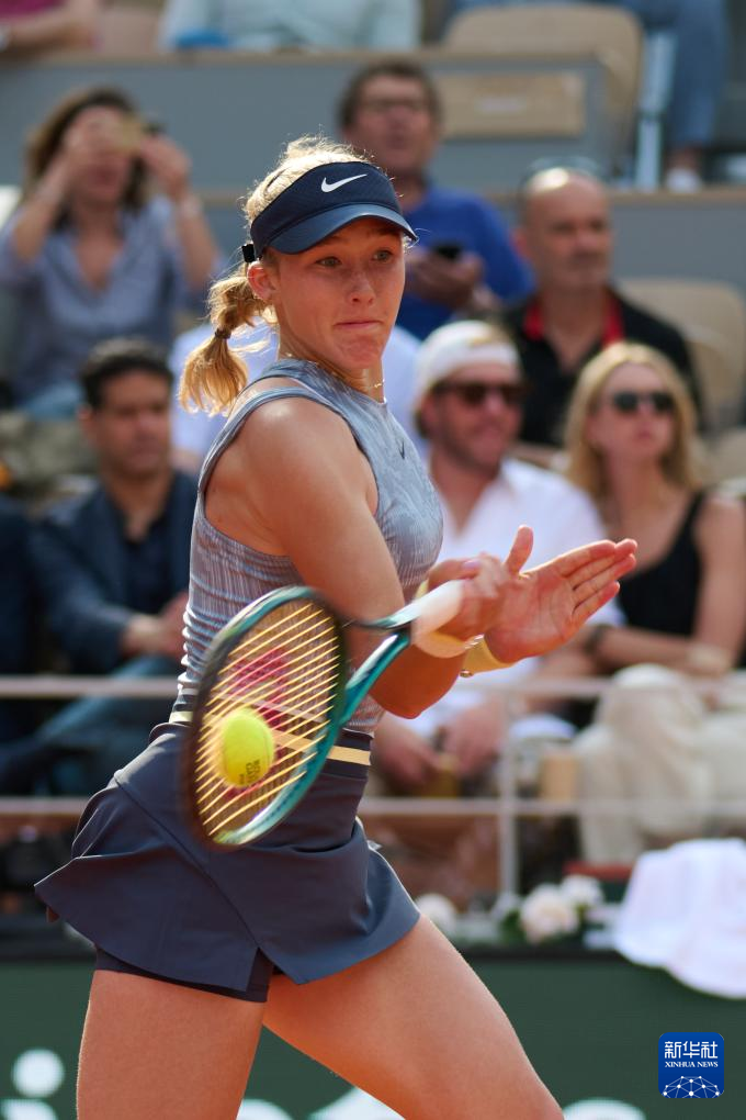 6月6日,米拉·安德烈耶娃在比赛中回球。新华社记者 孟鼎博 摄