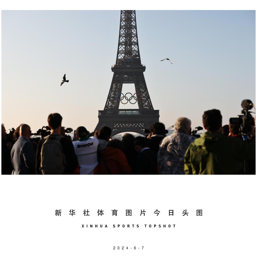 巴黎奥运会开幕倒计时50天之际,奥运五环标志于7日清晨亮相埃菲尔铁塔。巴黎奥运会将于7月26日至8月11日举行。