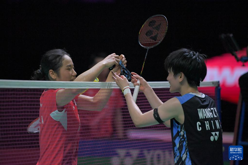 6月8日,安洗莹(左)和王祉怡在比赛后握手致意。新华社记者 徐钦 摄