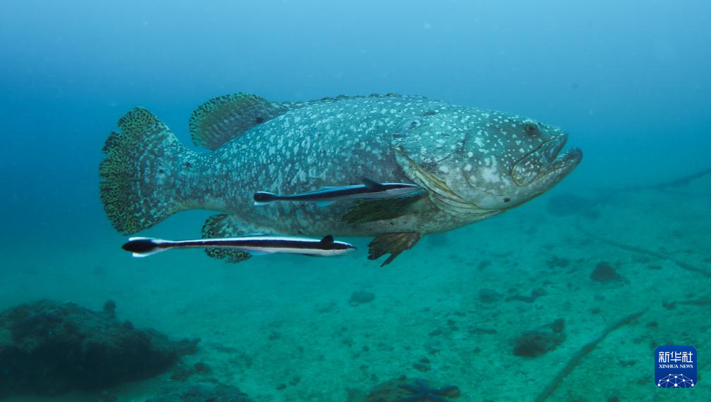 这是在三亚蜈支洲岛海域海洋牧场沉船鱼礁附近拍摄的巨型石斑鱼(2024年5月17日摄)。新华社记者 杨冠宇 摄