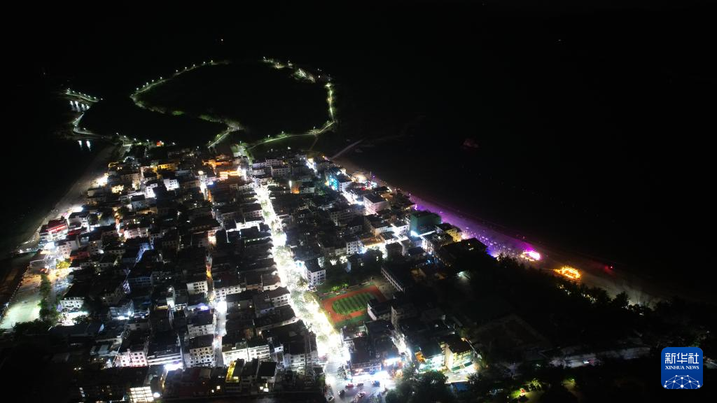 这是后海村街市夜景(无人机照片,2024年5月21日摄)。新华社记者 杨冠宇 摄