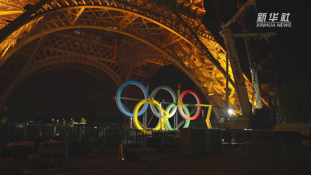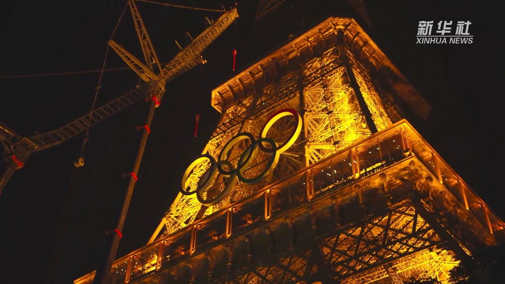 巴黎奥运会 | 奥运五环点缀埃菲尔铁塔_2024巴黎奥运会_新华网