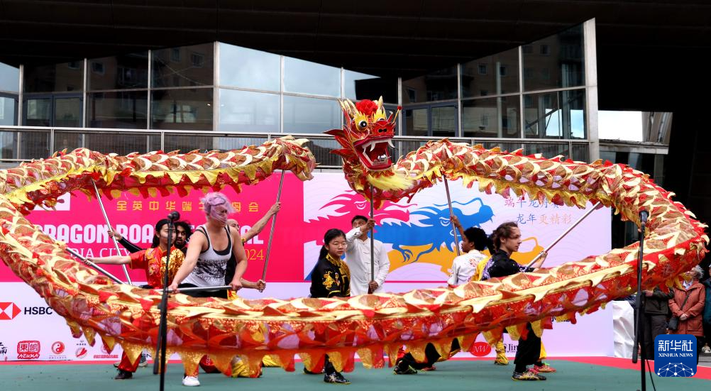 当日,2024年第十届全英中华端午龙舟会在英格兰大曼彻斯特地区索尔福德市劳瑞码头水上运动中心开幕。本次活动共有80余支队伍参赛。除了龙舟比赛,主办方还组织了武术、舞龙舞狮等有中国特色的表演节目,多方位展示中华传统文化。