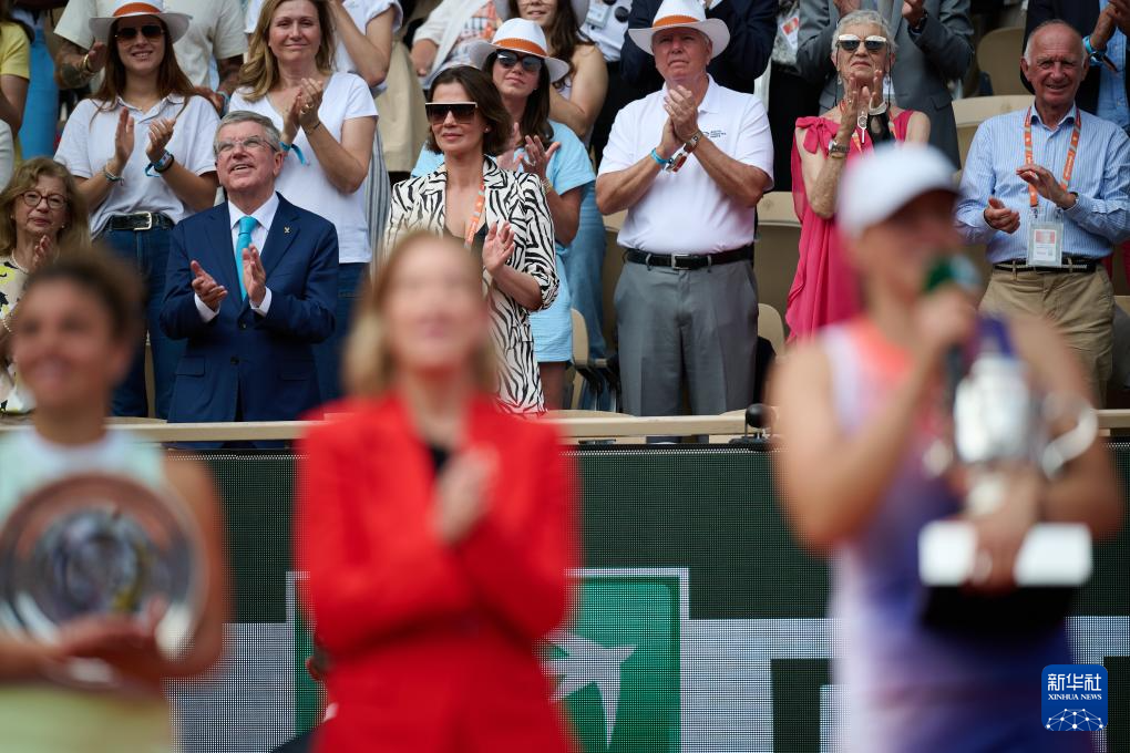 6月8日,斯维亚特克在颁奖仪式上。新华社记者 孟鼎博 摄