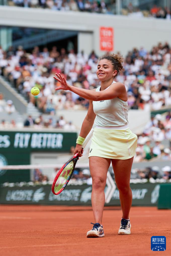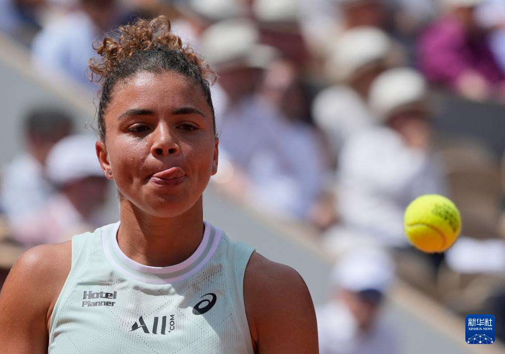 6月8日,保利尼在比赛中回球。新华社记者 高静 摄