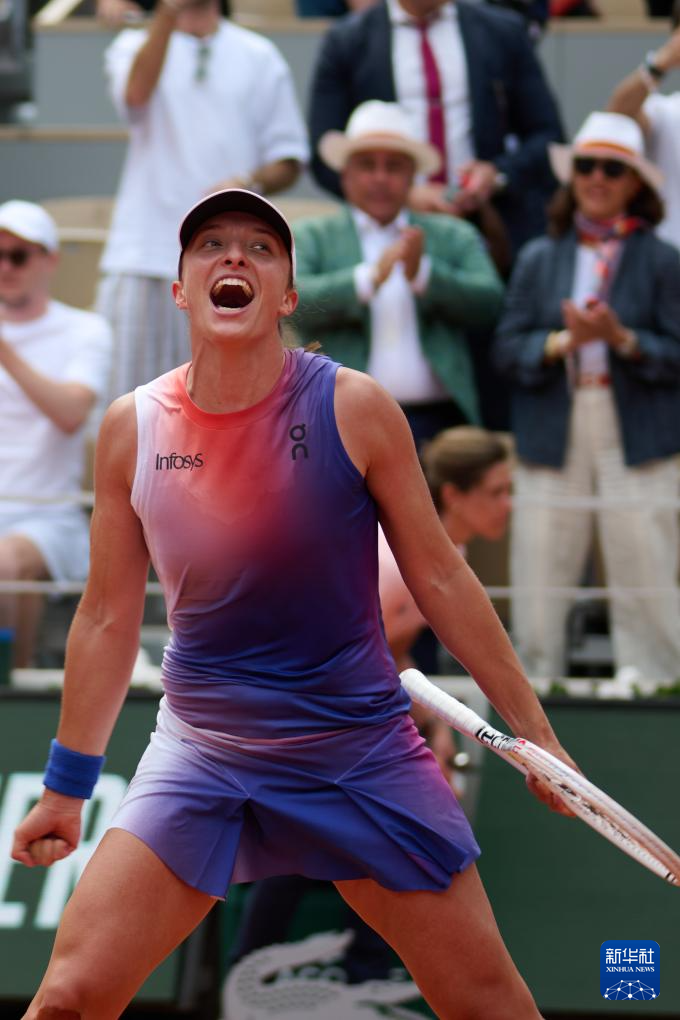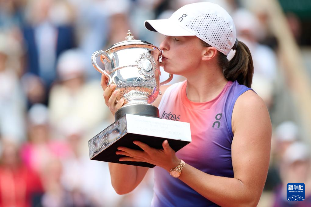 当日,在2024法国网球公开赛女子单打决赛中,波兰选手斯维亚特克2比0战胜意大利选手保利尼,夺得冠军。