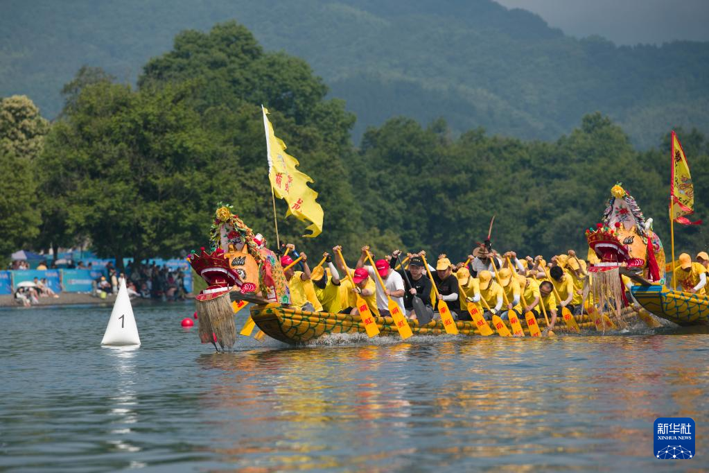当日,2024中国·桃花潭第十一届龙舟赛在安徽省宣城市泾县桃花潭镇举行,数十支龙舟队在桃花潭风景区赛龙舟,迎接端午节的到来。