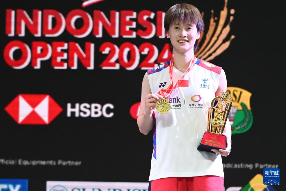 当日,在雅加达举行的2024年印度尼西亚羽毛球公开赛女单决赛中,中国选手陈雨菲2比1战胜韩国选手安洗莹,夺得冠军。