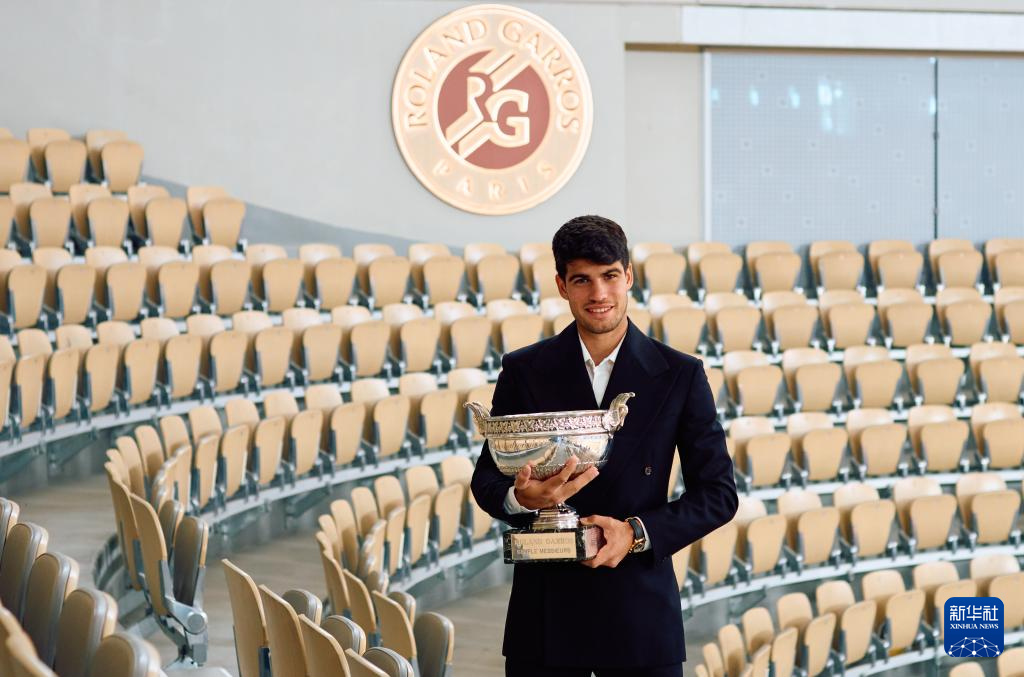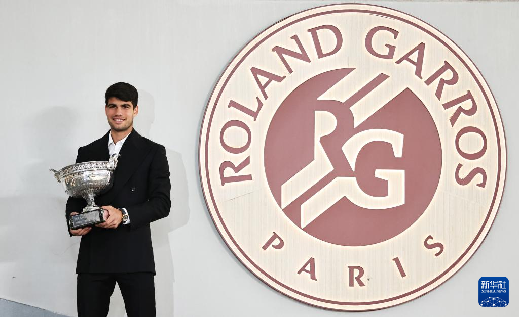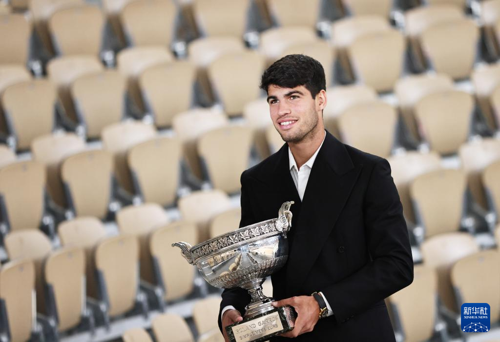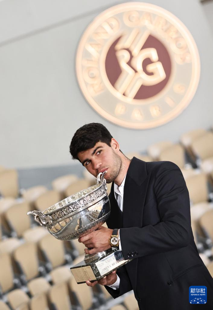 6月10日,阿尔卡拉斯捧杯留影。新华社记者 高静 摄