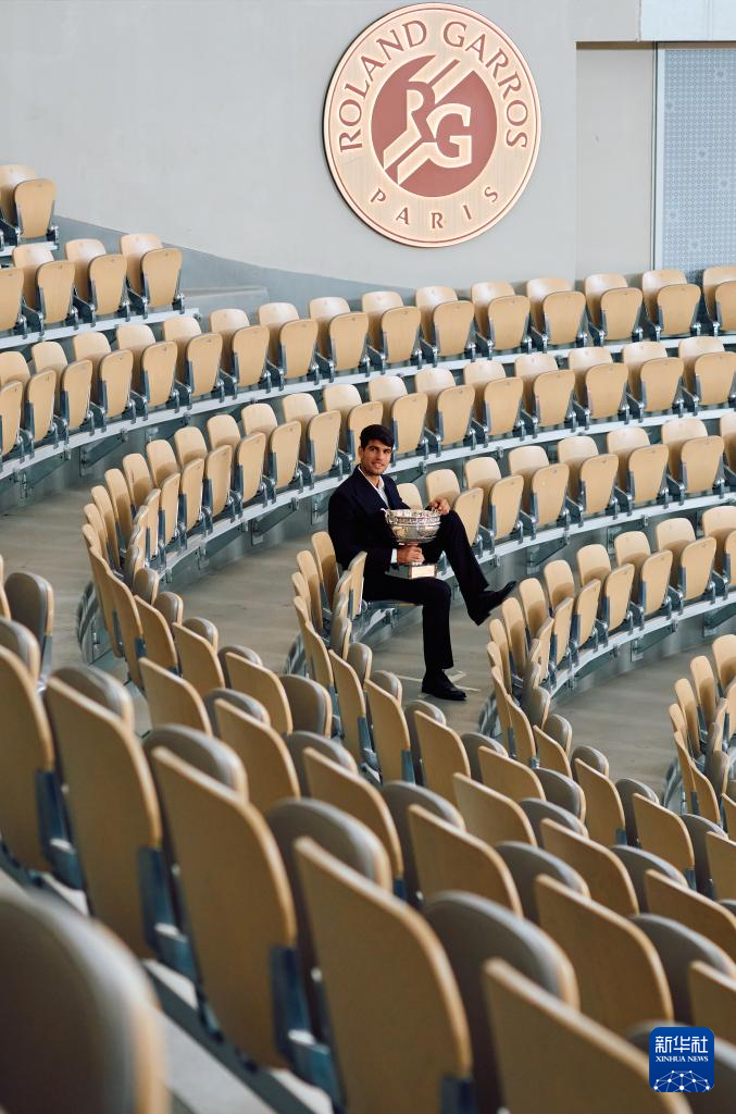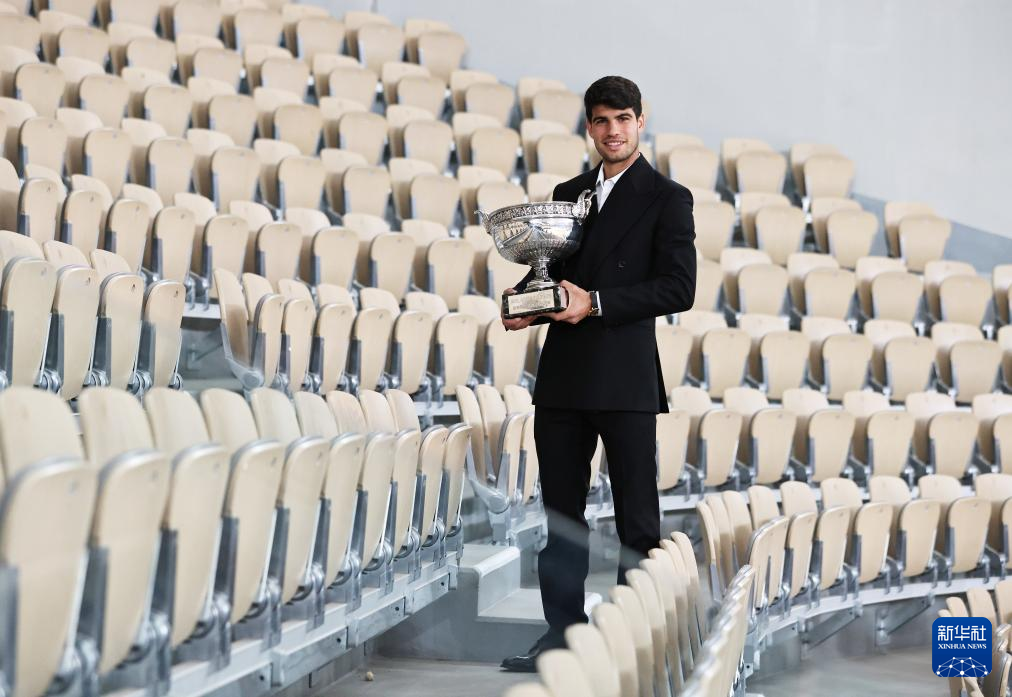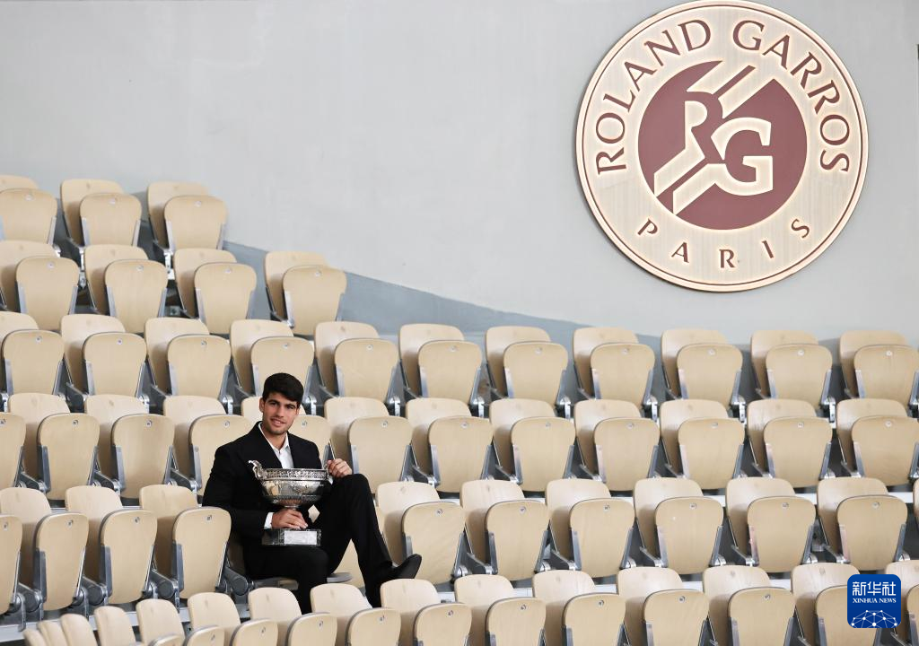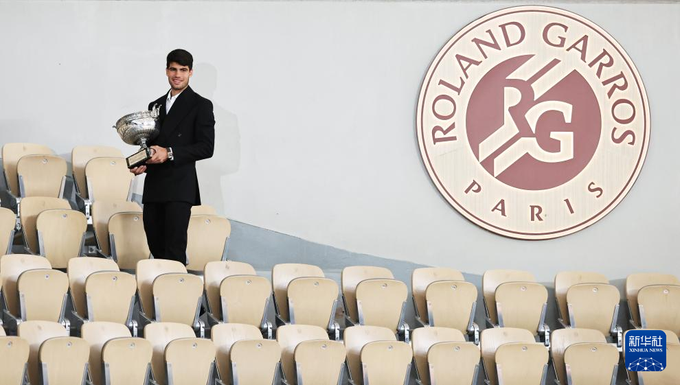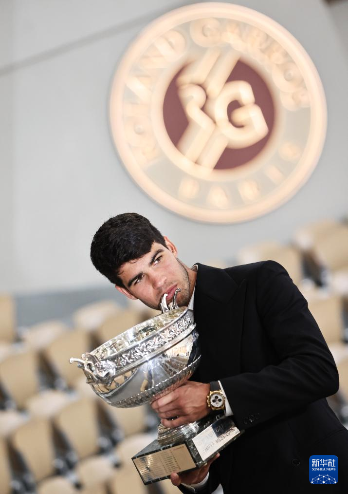 6月10日,阿尔卡拉斯捧杯留影。新华社记者 高静 摄
