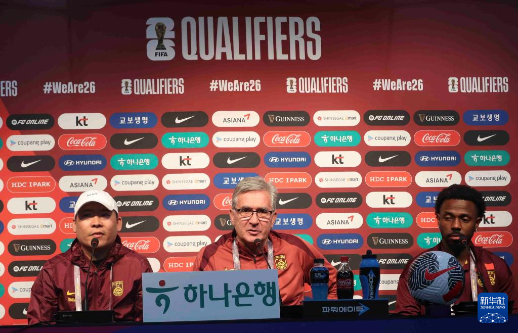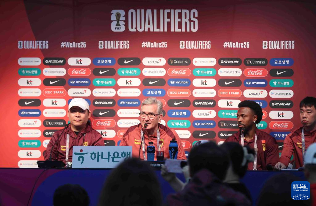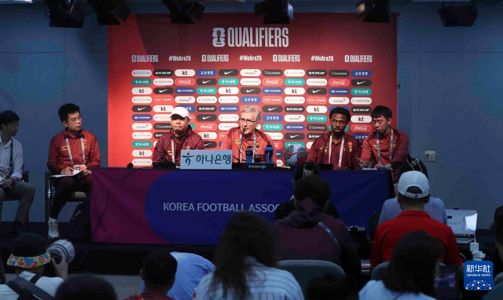 当日,中国国家男子足球队在韩国首尔召开赛前新闻发布会。中国队将在6月11日举行的2026年国际足联世界杯亚洲区预选赛36强赛中对阵韩国队。