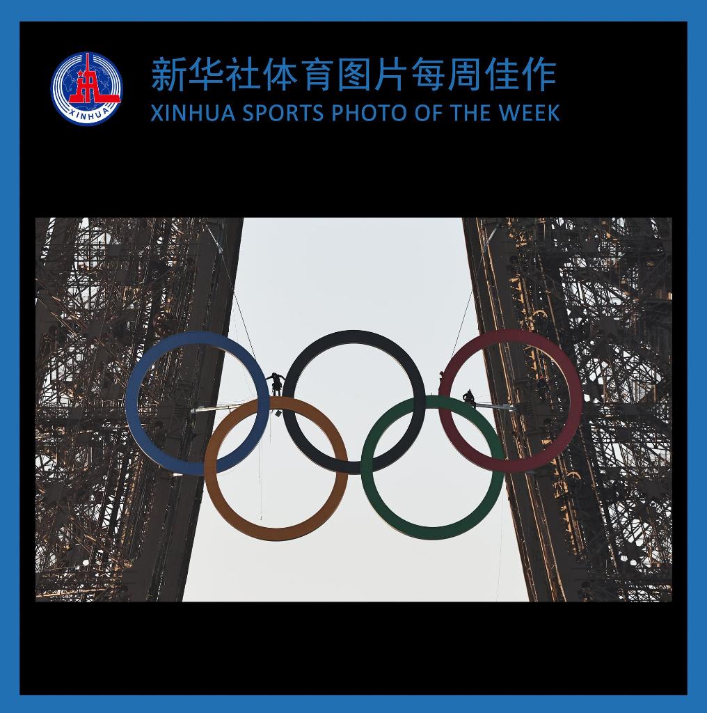 巴黎奥运会开幕倒计时50天之际,奥运五环标志于7日清晨亮相埃菲尔铁塔。巴黎奥运会将于7月26日至8月11日举行。